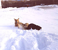 Tex, Shelby, and Brittany during winter "playtime" at The Pet Camp |  | |
